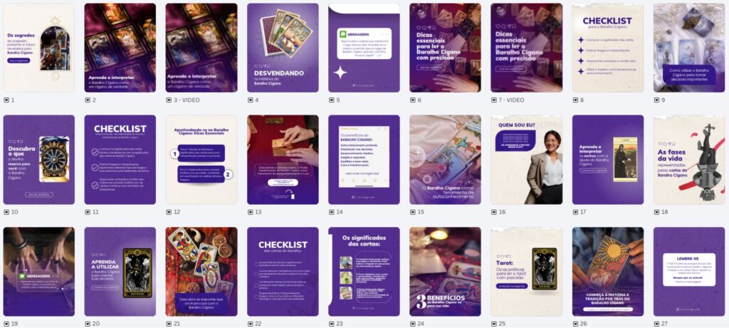 todo esse conteúdo — e dezenas de outros temas avançados — fazem parte do Pack Premium para Baralho Cigano, com artes profissionais, legendas prontas e conteúdos intuitivos para você postar diariamente no Instagram.