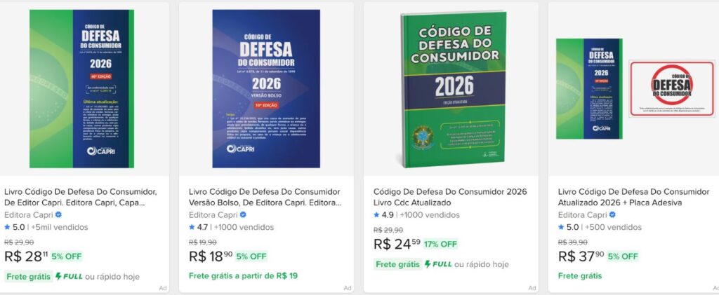 | Arrependimento de compra online | Art. 49 do CDC | Cancelamento e reembolso integral |