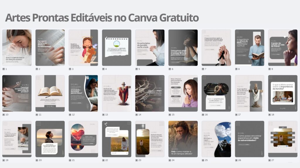 Criar artes do zero é uma tarefa demorada. Muitos passam horas escolhendo uma fonte, ajustando cores, tentando encontrar a imagem ideal. O Pack Canva Cristão elimina esse problema. As artes já estão prontas — basta abrir no Canva, ajustar o nome do perfil e postar.