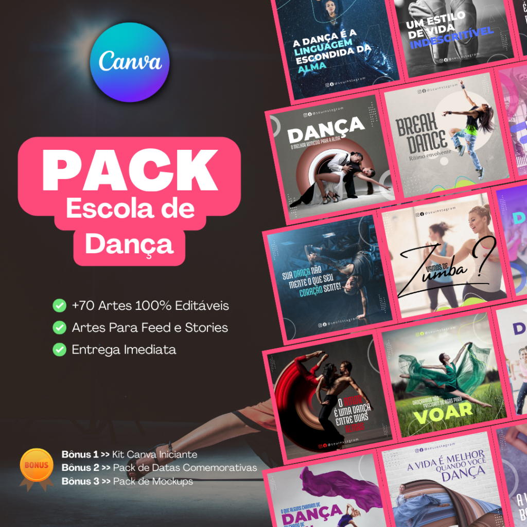 O Pack Canva para Escola de Dança foi criado para facilitar a divulgação das suas aulas e atividades.