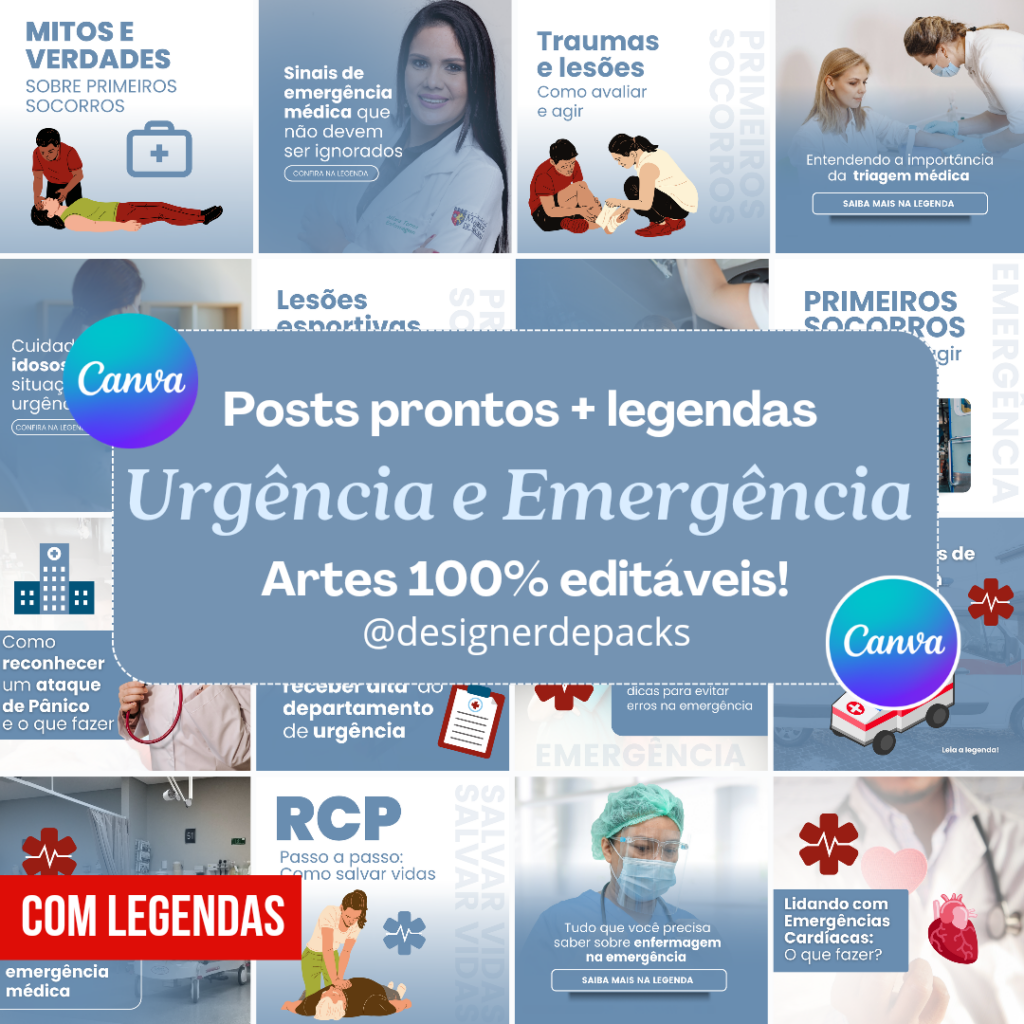 O Pack Canva Socorrista foi criado justamente para isso: oferecer mais de 100 artes prontas e editáveis, com legendas estratégicas, design profissional e conteúdo voltado à área de primeiros socorros e emergências médicas.